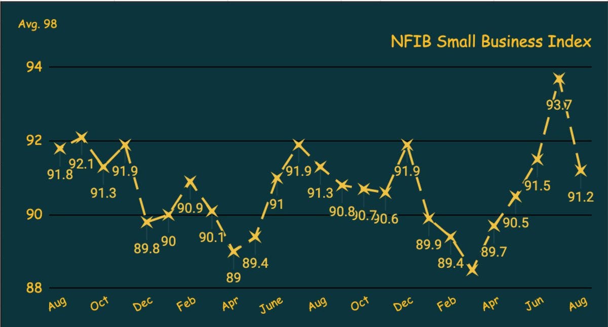 NFIB: 91.2. "Inflation remains the top issue among small business owners, with 24% of owners reporting it as their top operating issue. Sales expectations plummet and cost pressures increase. Uncertainty among owners continues to rise as expectations for future conditions worsen"