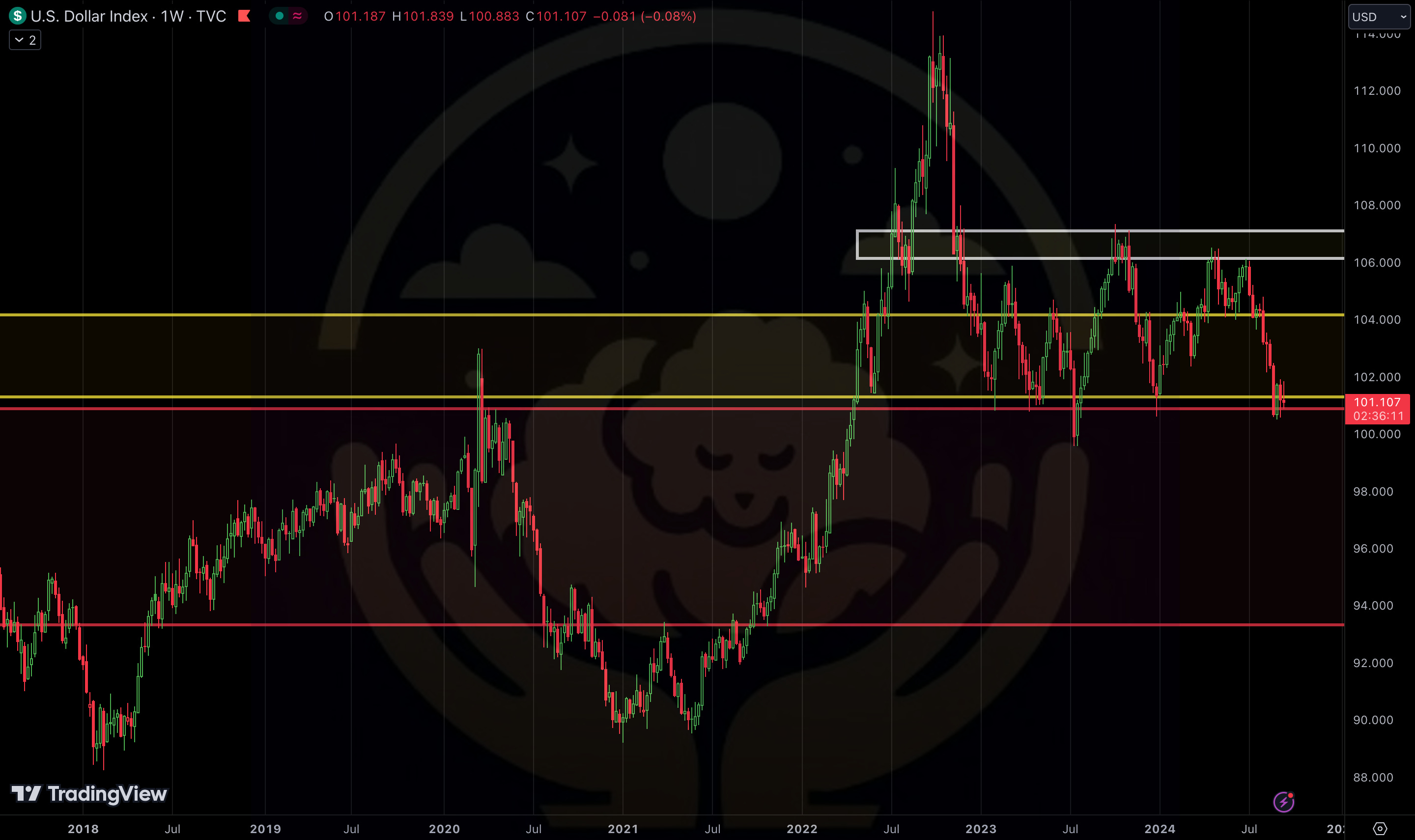 The U.S. dollar is likely to continue its downward trend due to a couple of factors. Lower interest rates, relative to other major economies, have reduced demand for the dollar as investors seek higher yields elsewhere. Additionally, slower economic growth and a scorching national debt from recent and expected government policies, are putting pressure on the dollar. The absence of global geopolitical risks has led investors to favor riskier assets, further driving down the dollar, which is often seen as a safe haven currency. Longer term I expect DXY to head towards $93.